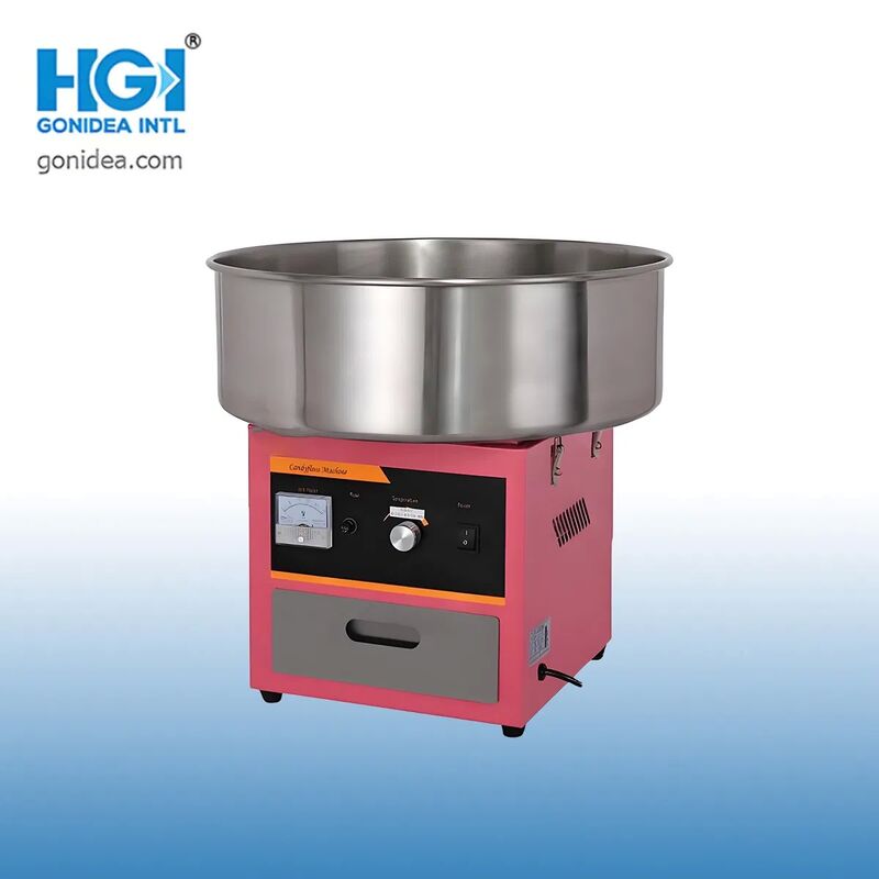 पेशेवर ग्रेड 950W इलेक्ट्रिक कैंडी फ्लॉस मशीन घरेलू और वाणिज्यिक उपयोग के लिए डिज़ाइन की गई है, जिसमें स्टेनलेस स्टील निर्माण और बहुमुखी कैंडी संगतता है।